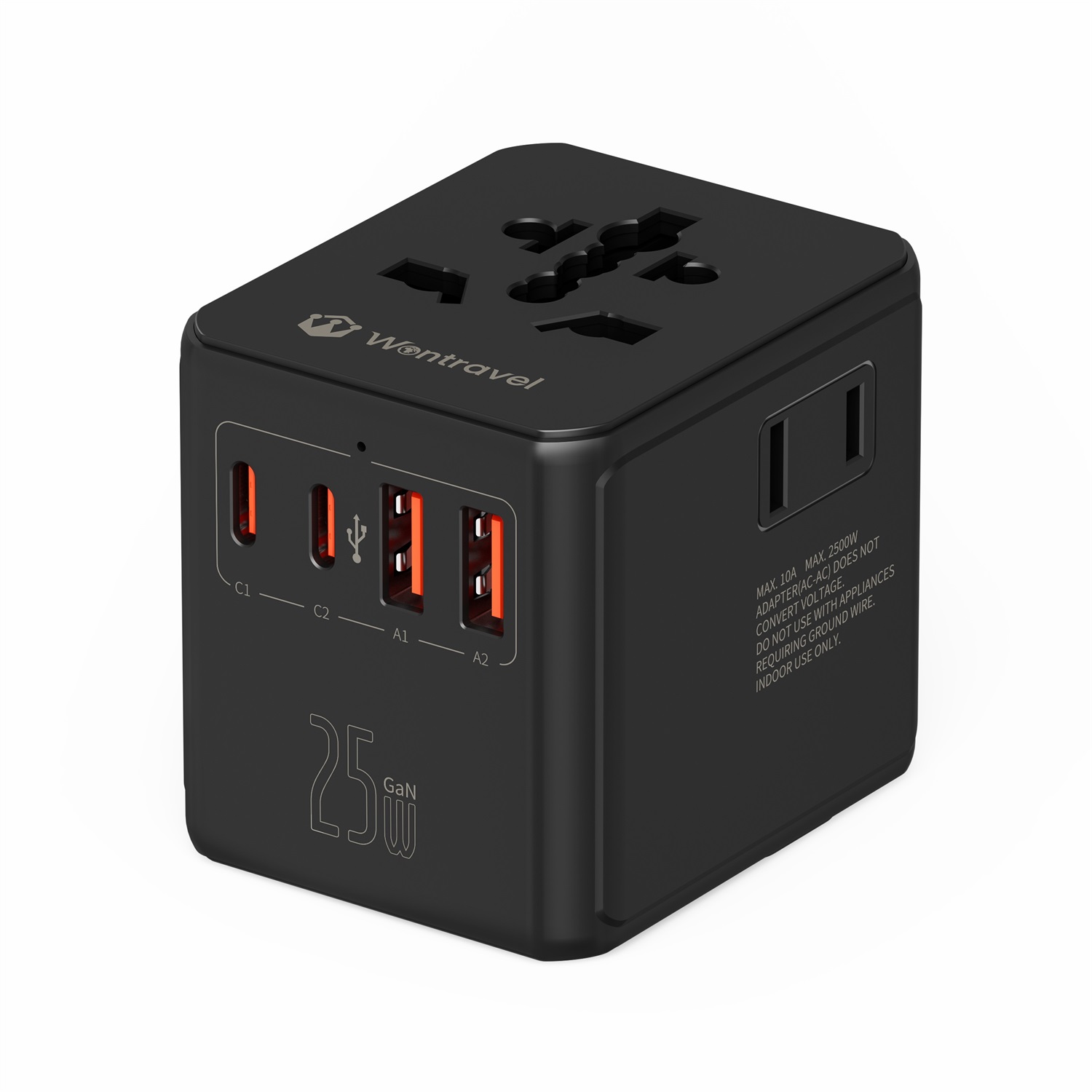 Wontravel Custom Logo 3AC Socket 25W GaN Worldwide Travel Adaptor Multi Plug Uniuversal Travel Adapter 7 in 1